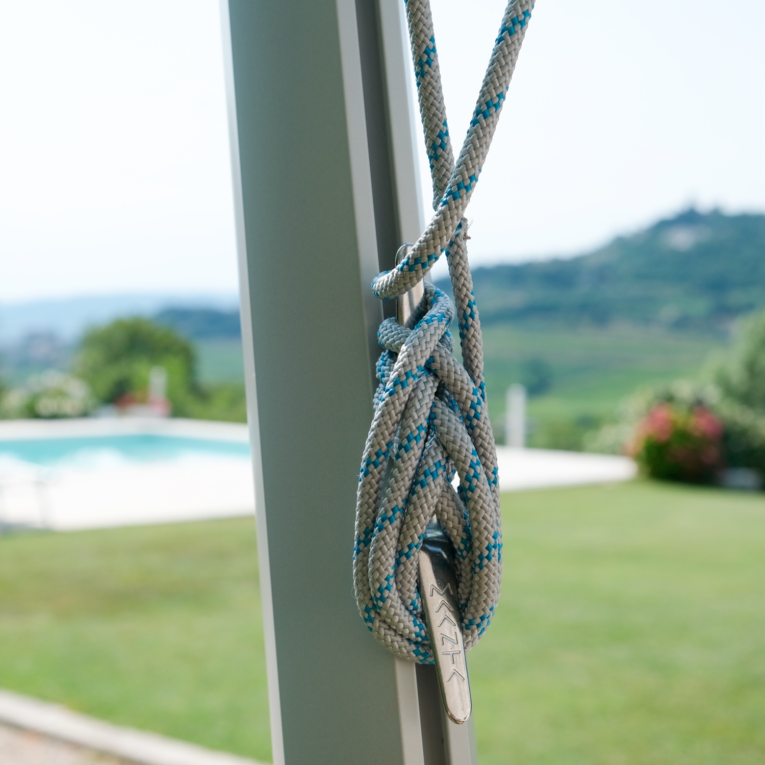 It includes all the necessary accessories for installation and is designed to easily adjust the height and tilt of the shade sails, ensuring constant tension and a structure that is resistant to the elements.