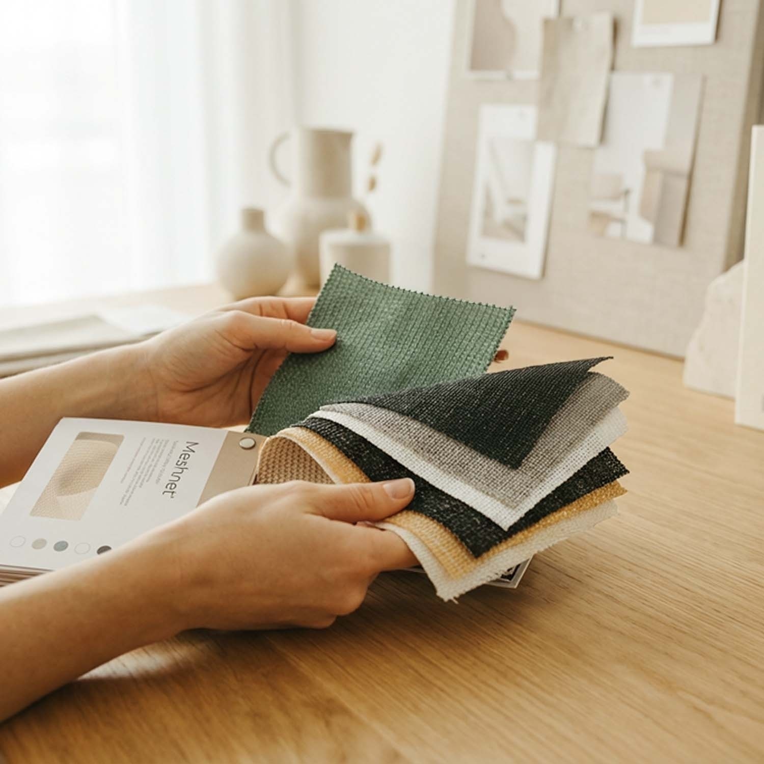 Feel the quality of our fabric samples for yourself: see all the colours available for our premium Purishade® and Meshnet® finishes up close. Shipping is always free.