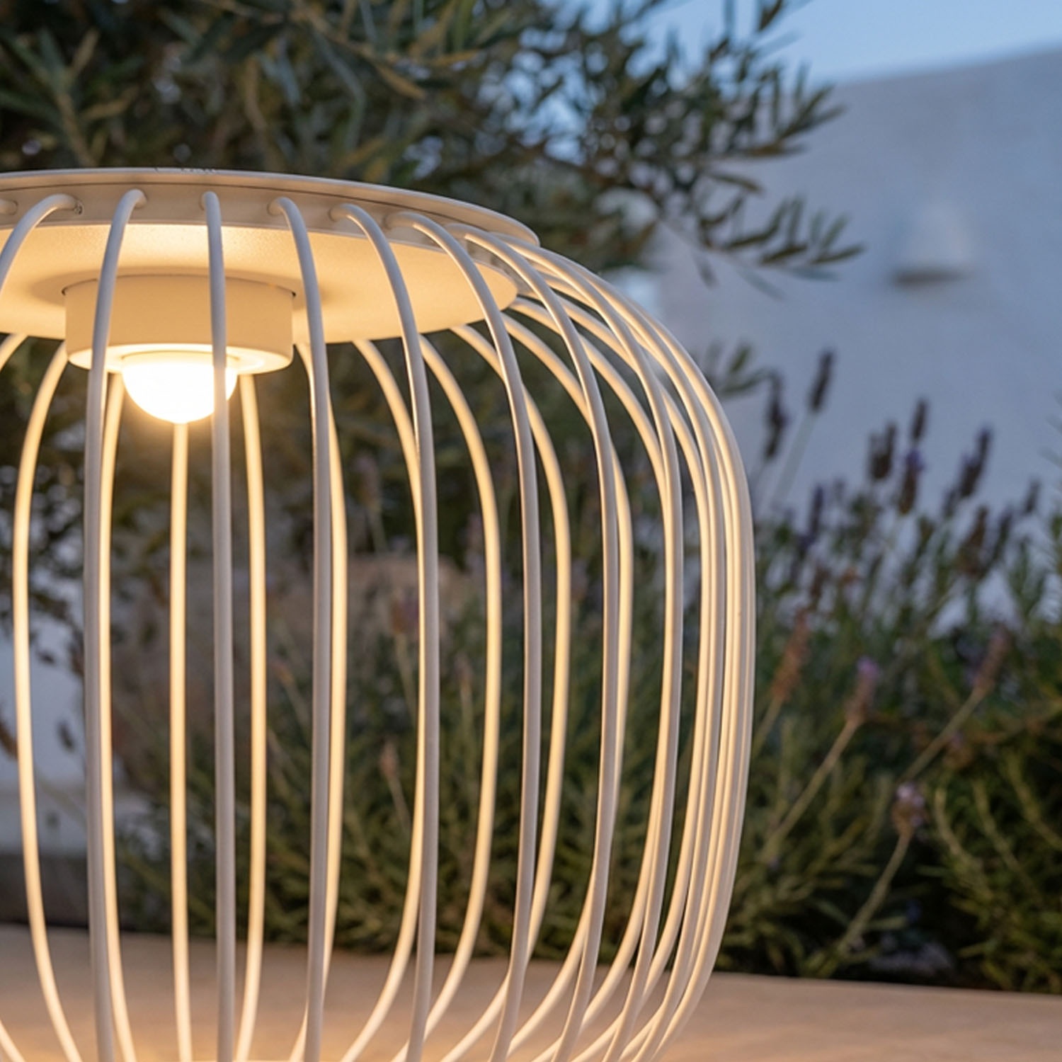 Spheria's lines are born from the study of the organic forms of the Mediterranean: the wire structure evokes fishermen's traps, the bird cages of historic gardens, and the lightness of wicker.