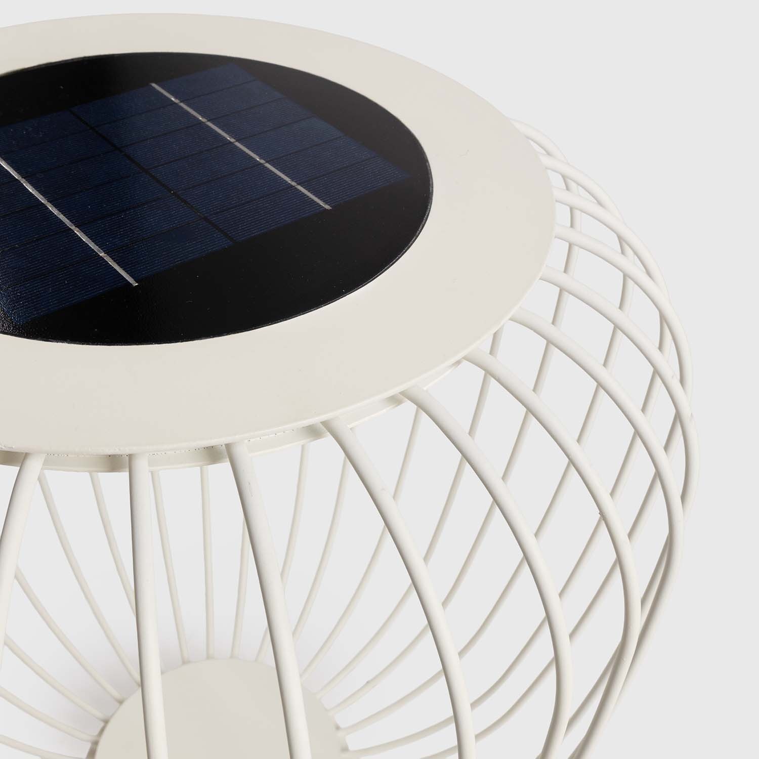 • Solar panel integrated into the top: charges during the day and lights up in the evening without electrical sockets