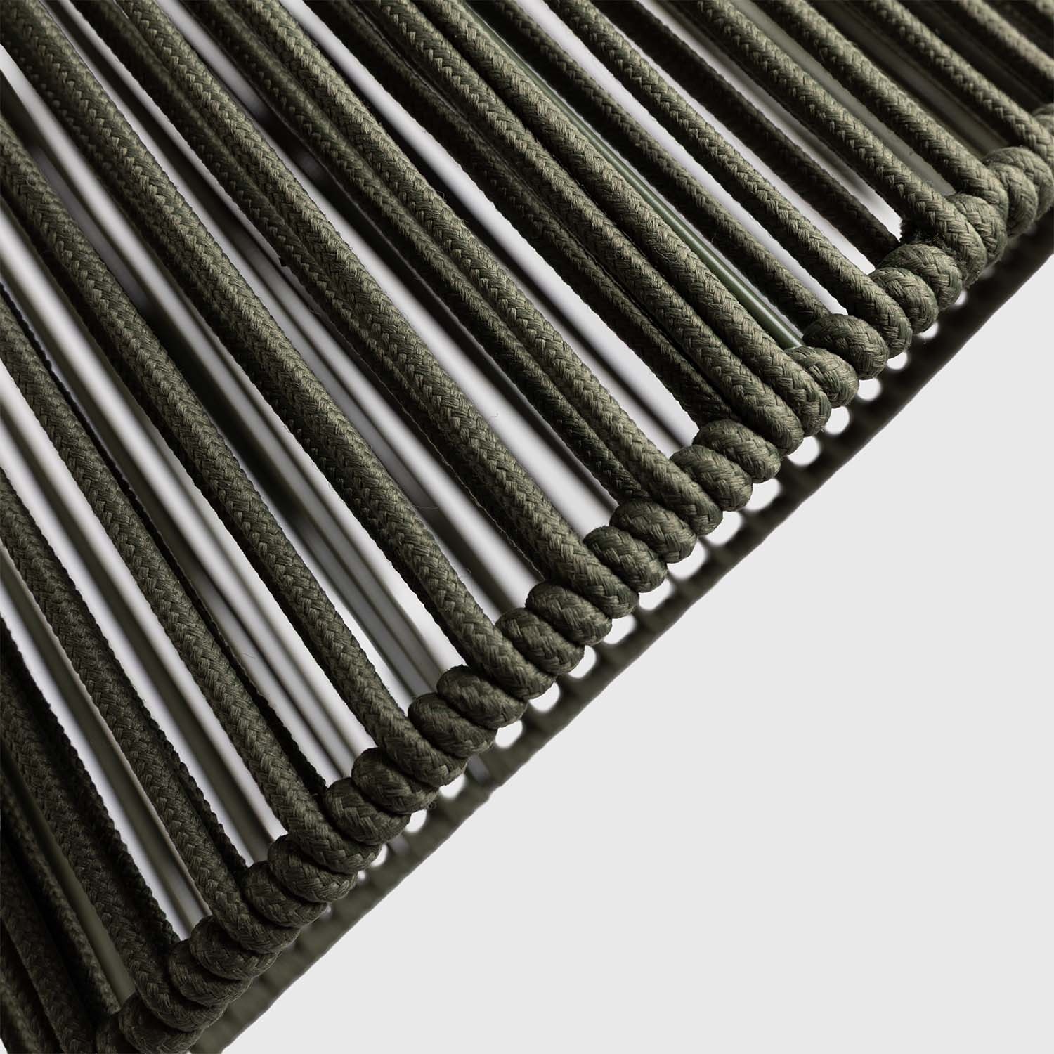 The weave of the olefin polypropylene rope acts as a filter: the light passing through the mesh casts a radial pattern of warm shadows on the surrounding surfaces. The effect is striking and changes depending on the angle and distance. It is the distinctive feature of the entire Maanta Rope range, designed to enhance outdoor living spaces such as British gardens and terraces.