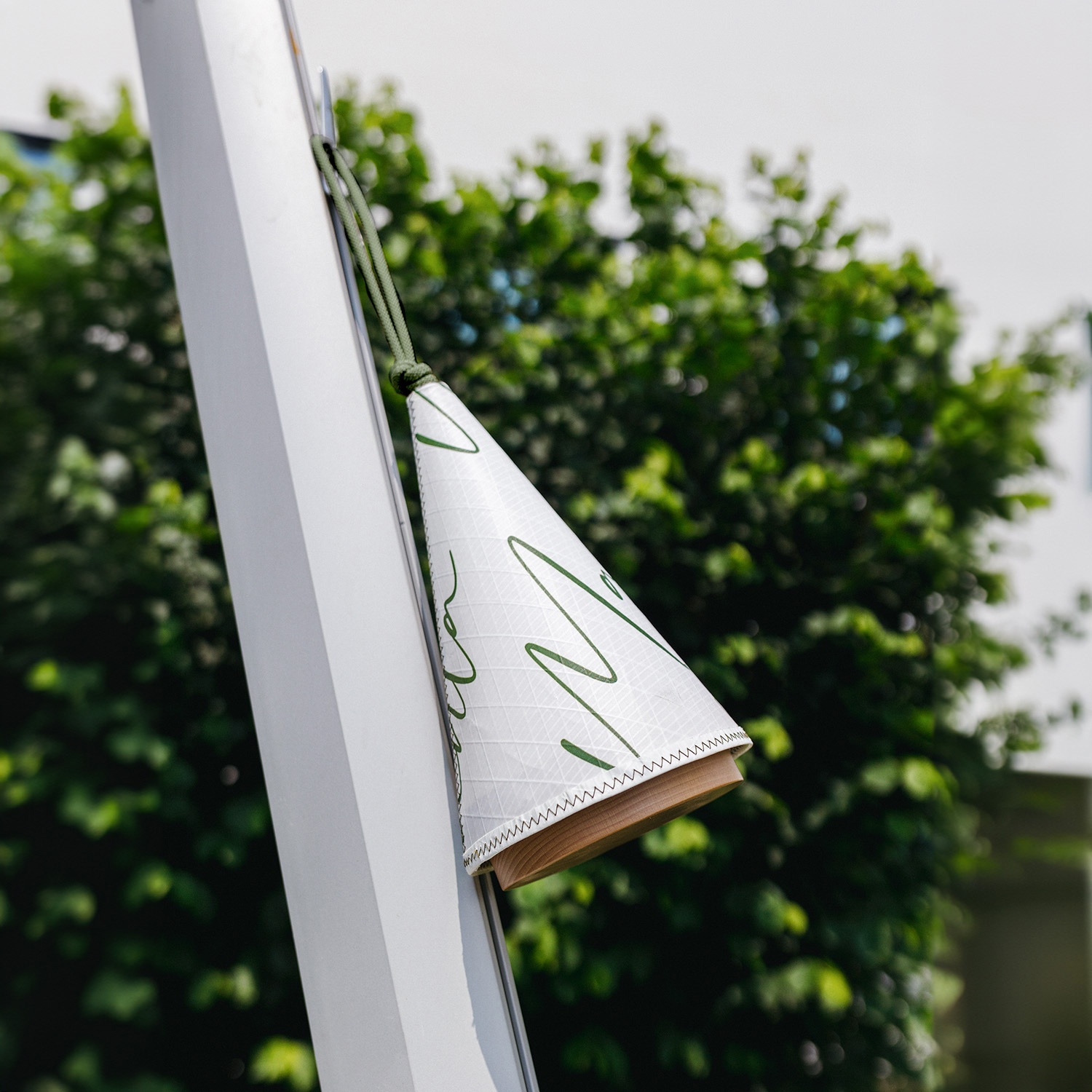 Cala is much more than a simple lamp: it is a sensorial 'experience that provides atmosphere' to your outdoor spaces. Its unique design, inspired by boat sails, combines the elegance of wood with the resistance of nautical materials.